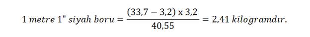 Örnek olarak 1 metre 1 parmak siyah su borusunun ağırlığını hesaplayalım.